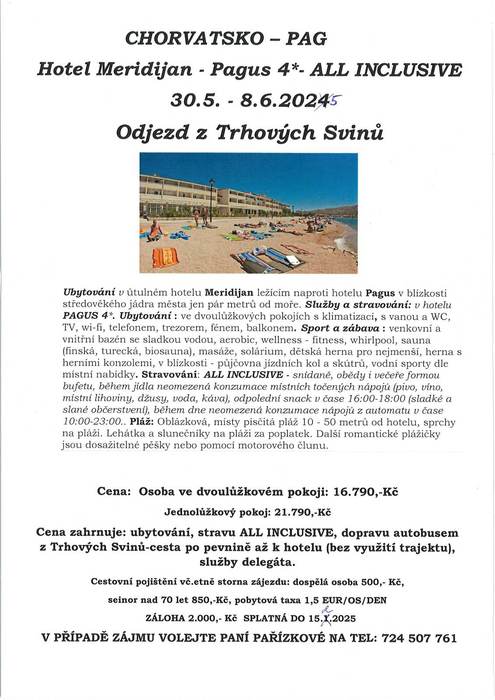 Úvod > Aktuality > Chorvatsko - Pag, hotel Meridijan, 30. května - 8. června 2025