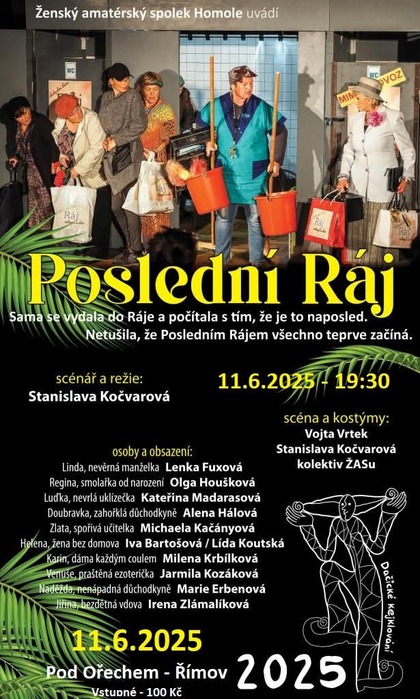 Ženský amatérský spolek Homole uvádí divadelní představení Poslední ráj, které se bude konat 11. června 2025 od 19:30 v Římově - Pod Ořechem