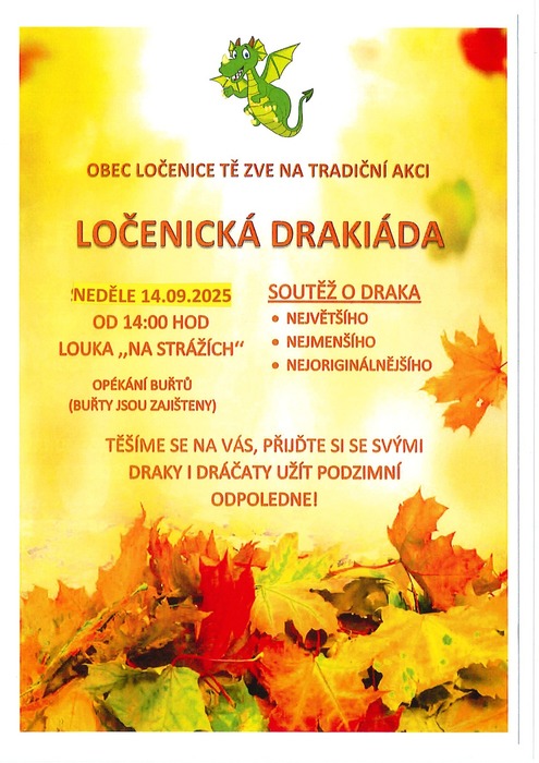 Úvod > Aktuality > V neděli 14.9.2025 proběhne v Ločenicích drakiáda.