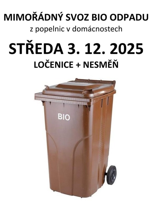 Ve středu 3.12.2025 proběhne ještě mimořádný svoz bio odpadu z popelnic v domácnostech.